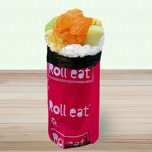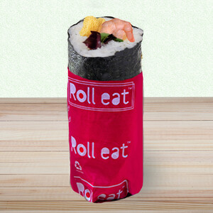 Alga nori, riso, salmone marinato in salsa teriyaki, rucola, pesto di basilico.