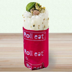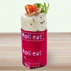 Sfoglia di soia con semi di sesamo, riso, bacon, uova strapazzate, philadelphia, misticanza, semi di sesamo, salsa aiole (informazioni: il prodotto è caldo)
