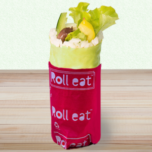 Sfoglia di soia, riso, feta, pomodorini datterini, olive taggiasche, cetrioli, peperoni, misticanza, pesto di basilico, maionese allo zenzero