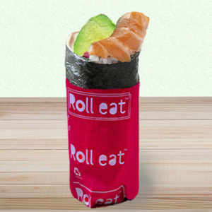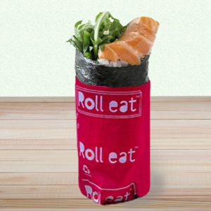 Alga nori, riso, salmone marinato in salsa teriyaki, rucola, pesto di basilico.